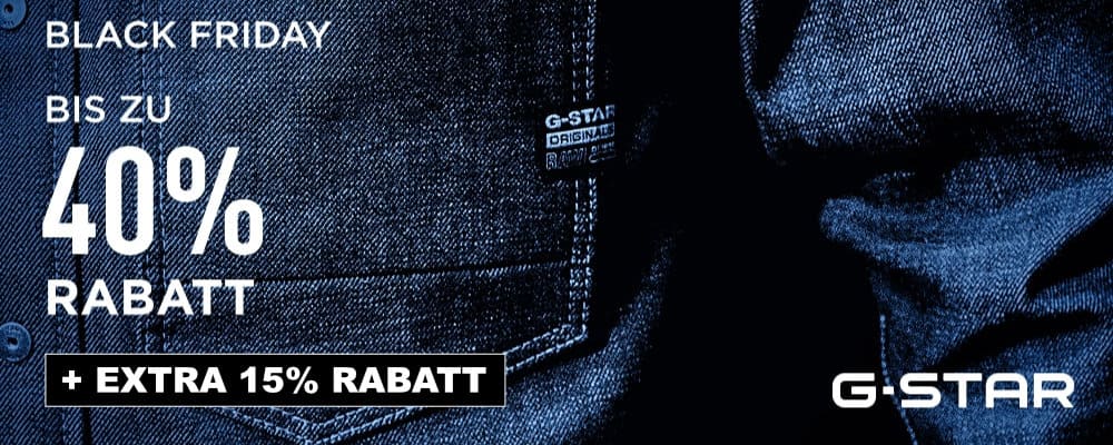 Spare jetzt zusätzlich 15% auf die bereits reduzierten Black Friday Artikel bei G-STAR.