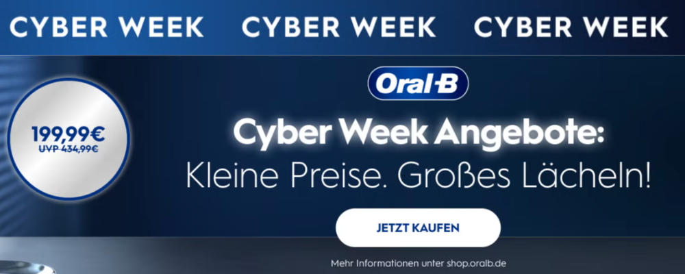 Spare jetzt bis zu 300€ mit den Black Friday Angeboten bei Oral-B. Gültig auf ausgewählte Artikel, siehe Aktionsseite.