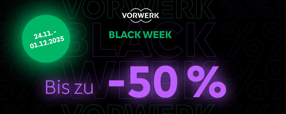 Satte Rabatte für dein Zuhause: Vorwerk Black Week: Spare bis zu 50% auf ausgewählte Artikel.
